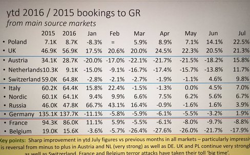 Οι κρατήσεις από τις δύο αυτές χώρες, οι οποίες τον Ιούνιο ήταν μειωμένες σημαντικά, αυξήθηκαν τον Ιούλιο 15,8% από την Αυστρία και κατά 11,7% από την Ολλανδία.