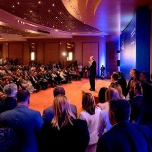 “Η παρουσία σας σήμερα εδώ, είναι η εγγύηση ότι η κατεύθυνση για το Νότιο Αιγαίο είναι μία και μόνο μπροστά!”. Με αυτά τα λόγια, ο Περιφερειάρχης Νοτίου Αιγαίου, Γιώργος Χατζημάρκος υποδέχθηκε τους εκατοντάδες των φίλων του που γέμισαν τη μεγάλη συνεδριακή αίθουσα «Δελφοί» του ξενοδοχείου “Ρόδος Παλάς” και τους χώρους έξω από αυτήν, για να παρακολουθήσουν την κεντρική πολιτική ομιλία του και την παρουσίαση των 30 υποψηφίων περιφερειακών συμβούλων της Περιφερειακής Ενότητας Ρόδου, που έγινε το βράδυ της Δευτέρας, μόλις 6 μέρες πριν από τις περιφερειακές εκλογές της 26ης Μαΐου.