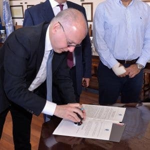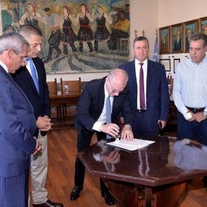 Παρόντες στην υπογραφή ήταν επίσης ο Υφυπουργός Τουρισμού κ. Μάνος Κόνσολας, ο Περιφερειάρχης Ν. Αιγαίου κ. Γιώργος Χατζημάρκος και ο Διοικητής της 95 ΑΔΤΕ, Υποστράτηγος Νικόλαος Φλάρης.