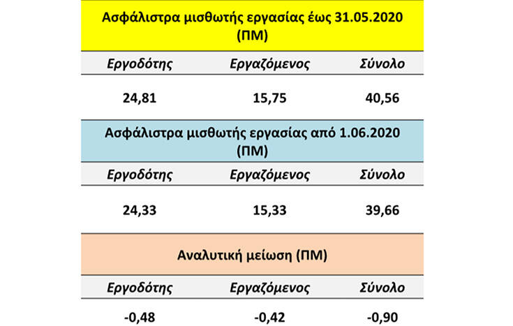 Ξεκινάει, από την 1η Ιουνίου 2020, η εφαρμογή του μέτρου της μείωσης των ασφαλιστικών εισφορών κατά 0,90 ποσοστιαίες μονάδες στη μισθωτή εργασία, μόνο για τις θέσεις πλήρους απασχόλησης.