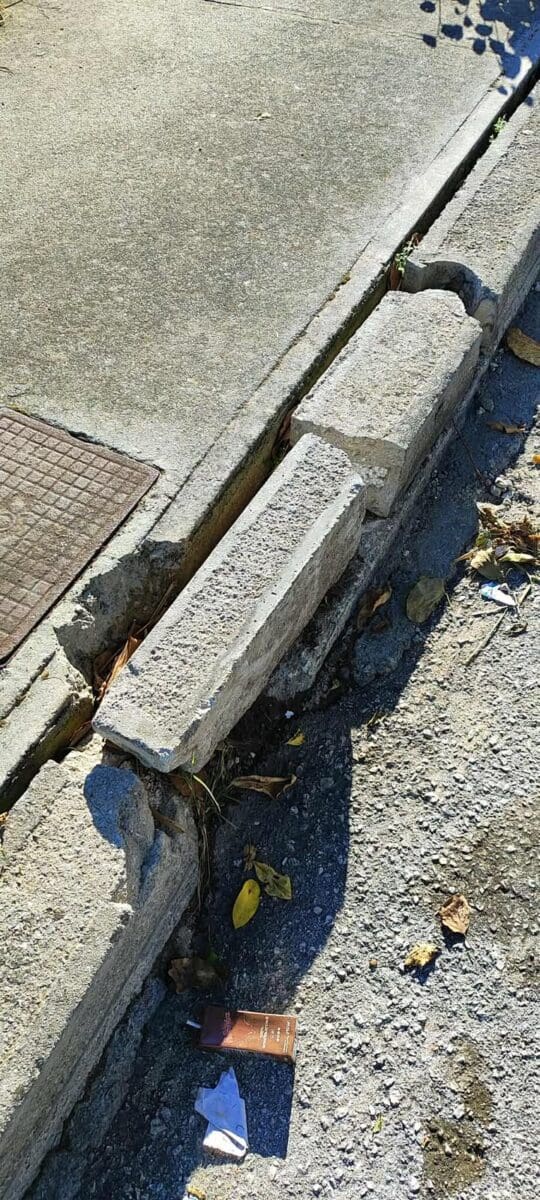 Επίσης, με την κακοκαιρία τα πεζοδρόμια έχουν ανοίξει ακόμα περισσότερο και αρκετοί από εμάς στη γειτονιά έχουμε πάθει ζημιές στα αυτοκίνητα, με σκασμένα λάστιχα. Θα σας στείλω τρεις φωτογραφίες για να δημοσιευτούν.