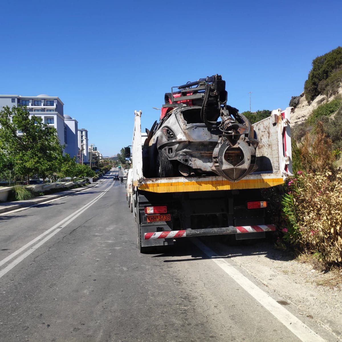 Απομακρύνθηκε με επιτυχία από το έμπειρο προσωπικό της Δ/νσης Καθαριότητας του Δήμου Ρόδου, με ασφάλεια, σε συνεννόηση με την Πυροσβεστική Υπηρεσία και την αρμόδια Αντ/ρχο Καθημερινότητας και Ανακύκλωσης Τσαμπίκα Κιαχαγιά-Μαγιόγλου, το όχημα που προξένησε μετά από ατύχημα φωτιά μικρής έκτασης απέναντι από γνωστό ξενοδοχείο επί της Ρόδου-Καλλιθέας.