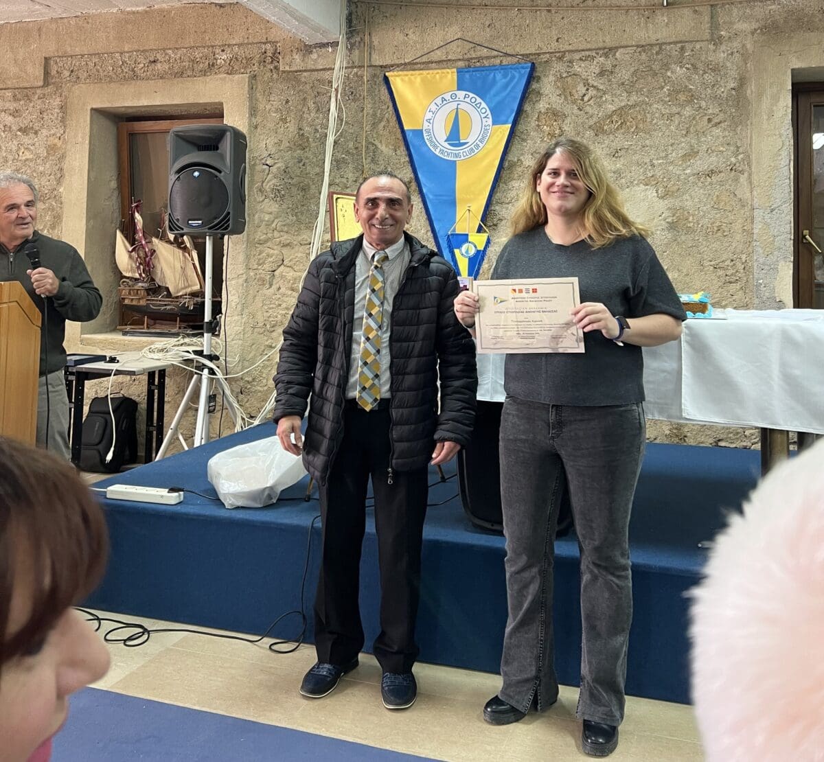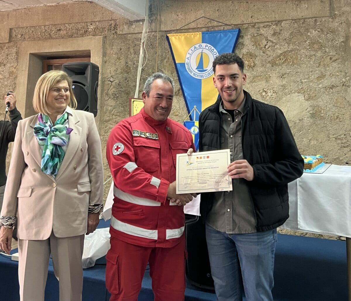 Ο Πρόεδρος του ΑΣΙΑΘΡ, Σταμάτης Σταύρας, απένειμε τιμητική πλακέτα στη Σημαιοφόρο του Λιμενικού Σώματος κα Αθανασία Βρέκου, για τη βοήθεια και τη συμμετοχή της ως εκπαιδευτή στη Σχολή.