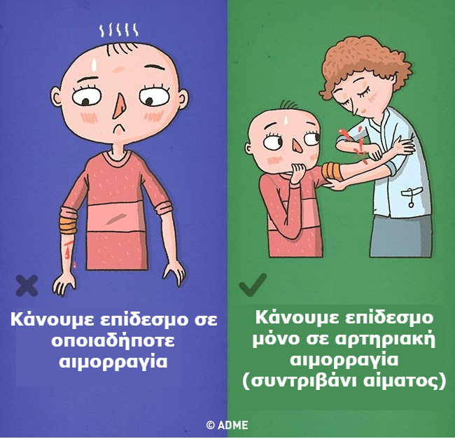 7. Μη βάζετε επίδεσμο, αν δεν υπάρχει αρτηριακή αιμορραγία