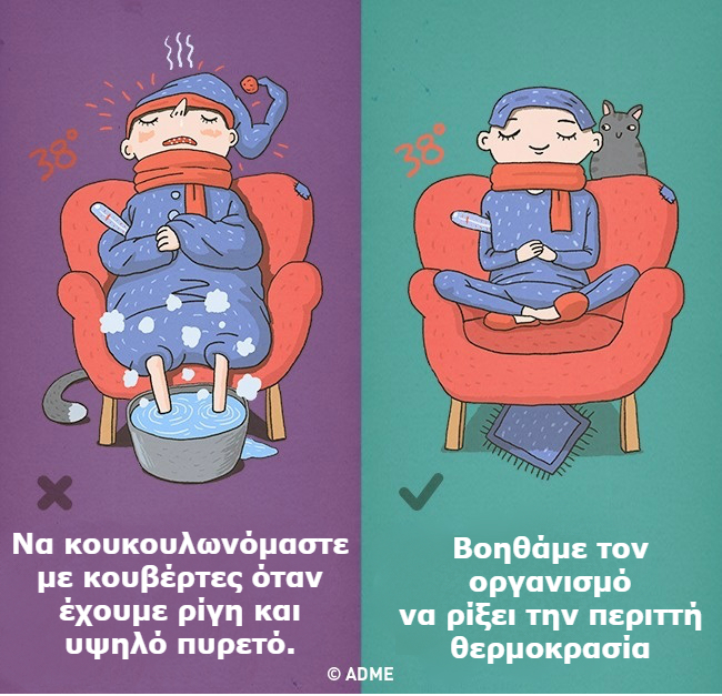 Όταν έχουμε υψηλό πυρετό σε συνδυασμό με ρίγη, σημαίνει ότι η θερμοκρασία του σώματος ανεβαίνει ακόμα περισσότερο. Όταν κουκουλωνόμαστε με κουβέρτες, η θερμοκρασία ανεβαίνει ακόμα γρηγορότερα. Αυτό προκαλεί περισσότερο κακό, παρά καλό στον οργανισμό μας, ιδιαίτερα όταν ο πυρετός ξεπερνάει τους 38 βαθμούς. Αν νιώθετε ρίγη ενώ έχετε πυρετό, τότε χρειάζεστε δροσιά και όχι ζέστη.