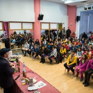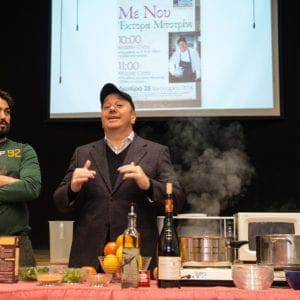 Από νωρίς το πρωί, η αίθουσα «Καλλιπάτειρα» των Εκπαιδευτηρίων μετατράπηκε σε έναν χώρο δημιουργίας ο οποίος μοσχοβολούσε μυρωδιές. Το πρώτο “Master Class”, απευθυνόταν σε μαθητές του Δημοτικού και στους γονείς τους. Ο Σεφ, έχοντας ως βοηθούς του επίδοξους μικρούς μάγειρες, δημιούργησε ένα υγιεινό και νόστιμο πιάτο. Με πολύ μεράκι και φαντασία ετοίμασε ένα “hotdog” από κοτόπουλο, το οποίο συνδύασε με σπιτική κέτσαπ και τραγανές, τηγανιτές πατάτες χωρίς λάδι. Στη συνέχεια, ο σεφ αποκάλυψε μικρά μυστικά μαγειρικής και έδωσε συμβουλές για έναν πιο υγιεινό τρόπο ζωής. Τα παιδιά ενθουσιασμένα έκαναν συνεχώς ερωτήσεις και αγκάλιασαν με τον δικό τους μοναδικό τρόπο τον αγαπημένο τους σεφ.