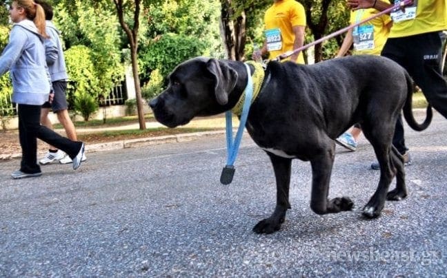 Στον αγώνα των 5 χιλιομέτρων στον Μαραθώνιο της Αθήνας συμμετείχε ένας σκύλος, ο οποίος μάλιστα κατάφερε, μαζί