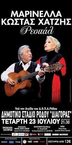 ΜΑΡΙΝΕΛΛΑ – ΚΩΣΤΑΣ ΧΑΤΖΗΣ Μια Μεγάλη Μουσική Συνάντηση «Σύνορα …Αυτή… η αγάπη δεν γνωρίζει» ΔΗΜΟΤΙΚΟ ΣΤΑΔΙΟ ΡΟΔΟΥ