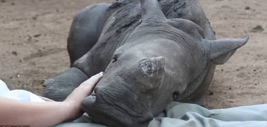 Ένα μωρό ρινόκερος, που έμεινε ορφανό όταν η μητέρα του θανατώθηκε από λαθροθήρες της άγριας ζωής