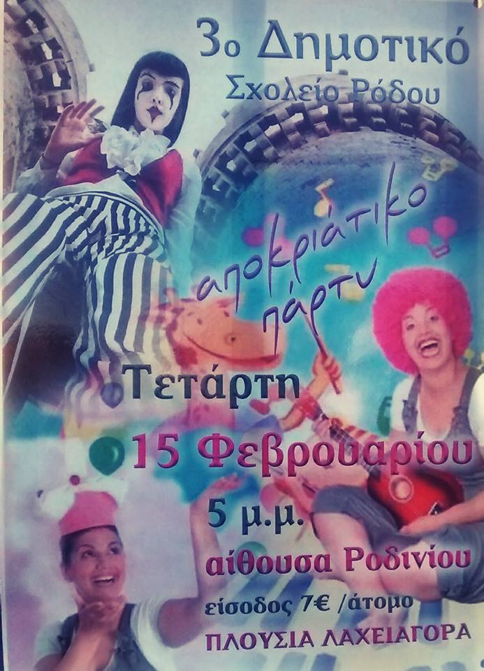 Ο Σύλλογος Γονέων & Κηδεμόνων του 3ου Δημοτικού Σχολείου (Βενετόκλειο) διοργανώνει αποκριάτικο πάρτι για την ενίσχυση των