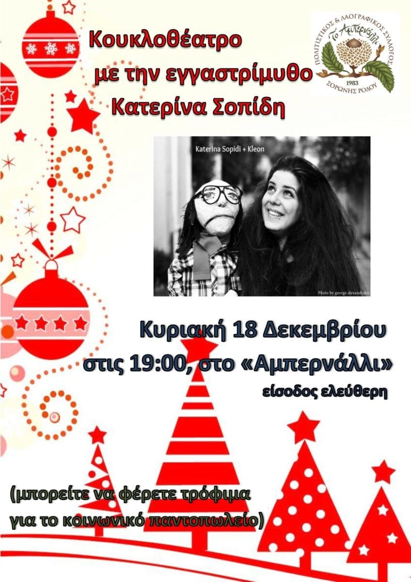 ΣΑΒΒΑΤΟ 10 ΔΕΚΕΜΒΡΙΟΥ 20:00 Πνευματικό και Πολιτιστικό Κέντρο Κρητηνίας. Χάρτινο κουκλοθέατρο “Η Τοσοδούλα”. Πρόκειται για μια σύγχρονη