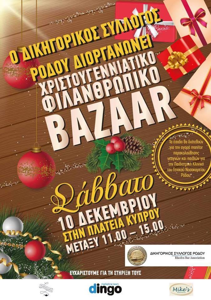 Η Ομάδα Κοινωνικής Δράσης του Δικηγορικού Συλλόγου Ρόδου διοργανώνει για τρίτη συνεχή χρονιά φιλανθρωπικό χριστουγεννιάτικο bazaar το