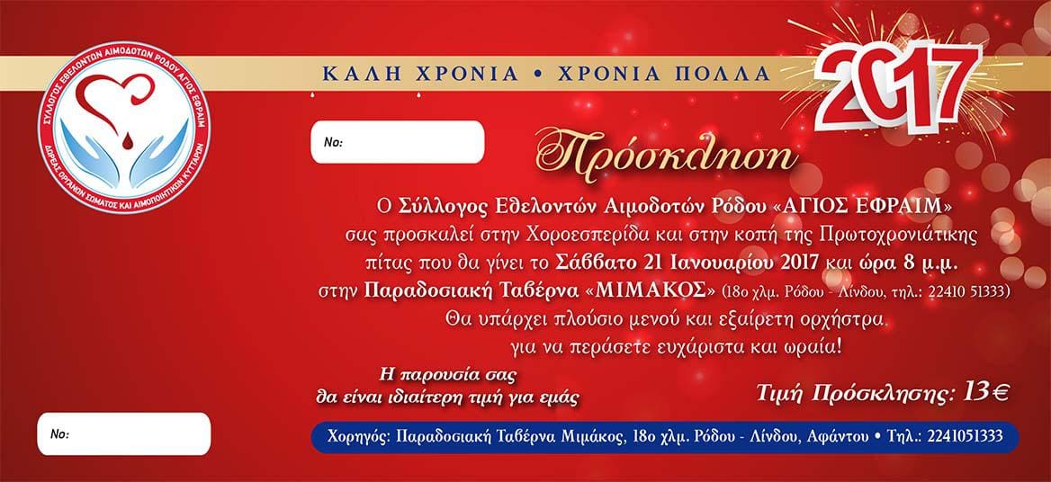 Ο Σύλλογος Εθελοντών Αιμοδοτών Ρόδου «Άγιος Εφραίμ» προσκαλεί τα μέλη του στην Χοροεσπερίδα και στην κοπή της