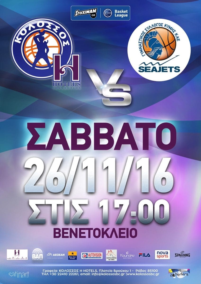 Το Σάββατο ο Κολοσσός H Hotels θα αντιμετωπίσει την Κύμη Seajets