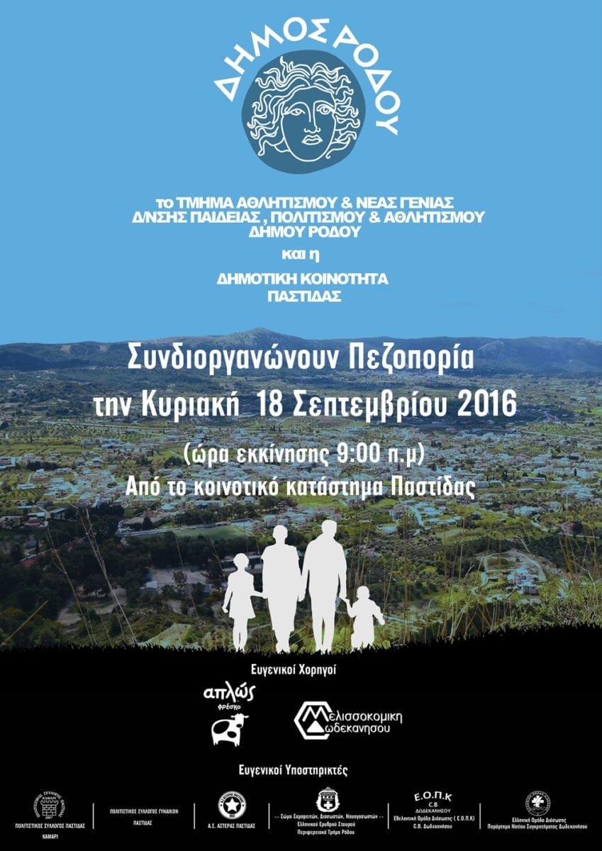 Σας ενημερώνουμε, εκ νέου, ότι την Κυριακή 18 Σεπτεμβρίου 2016, συνδιοργανώνεται από το Τμήμα Αθλητισμού & Νέας