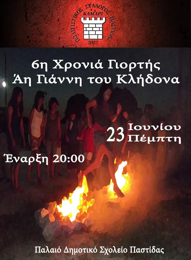 Ο Πολιτιστικός Σύλλογος Παστίδας ”Καμάρι” σας προσκαλεί την Πέμπτη 23 Ιουνίου και ώρα 20:00 στο Παλαιό Δημοτικό