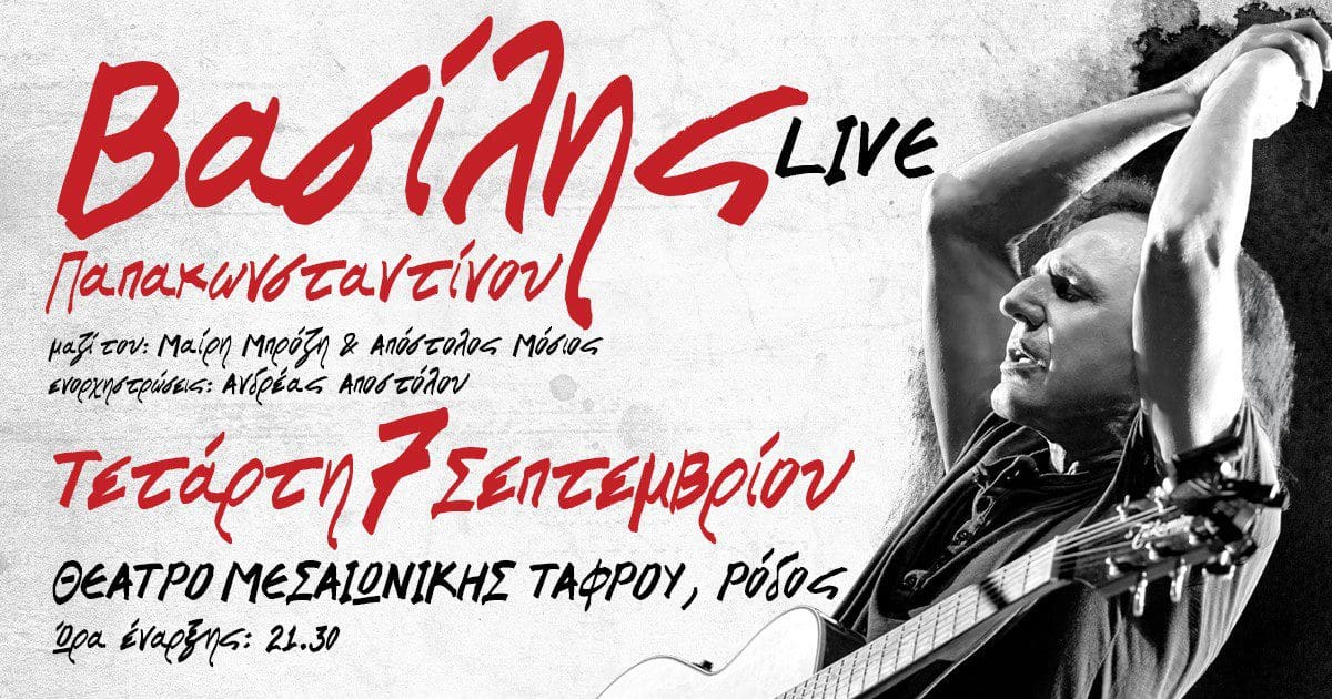 Ο αιώνιος έφηβος Βασίλης Παπακωνσταντίνου την Τετάρτη 7 Σεπτεμβρίου στη Ρόδο στο Θέατρο της Μεσαιωνικής Τάφρου