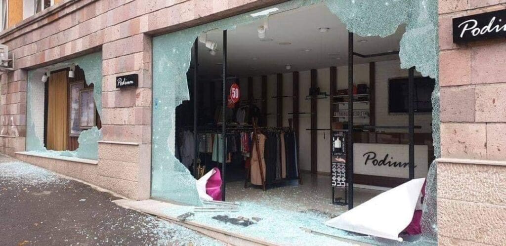 Τα καταστήματα έχουν κλείσει για μέρες, αλλά δεν έχουν λεηλατηθεί, ούτε καν αυτά με σπασμένα γυαλιά. Οι