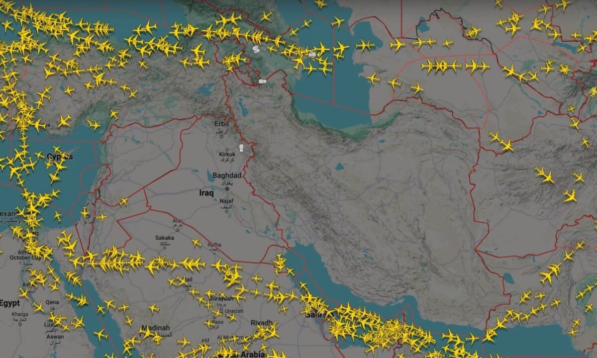 Σε χάρτη που κοινοποιήθηκε στα social media φαίνεται ο εναέριος χώρος στη Μέση Ανατολή με τον ουρανό