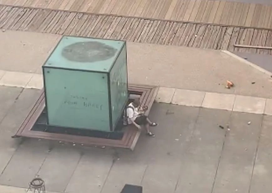 Ένας άνδρας καταγράφηκε να τρώει ήρεμα το σάντουιτς του, ενώ γάλλοι διαδηλωτές και αστυνομικοί συγκρούονταν την Πέμπτη. Το βίντεο έχει