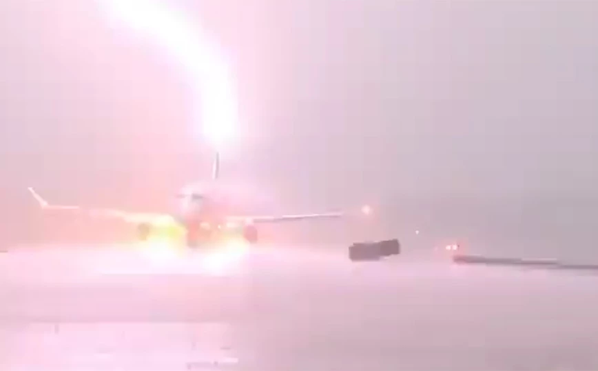 Αυτή είναι η συγκλονιστική στιγμή που ένας κεραυνός χτύπησε ένα αεροπλάνο της American Eagle γεμάτο επιβάτες, λίγα λεπτά μετά την προσγείωσή