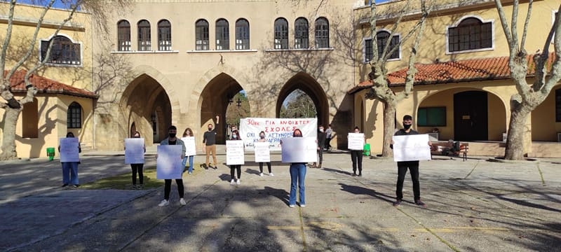 Με πρωτοβουλία της Επιτροπής Αγώνα Φοιτητών Ρόδου που δημιουργήθηκε, φοιτητές πραγματοποίησαν την Παρασκευή 5/2 παράσταση διαμαρτυρίας στο