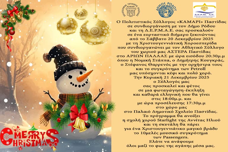 Το Σάββατο 20 Δεκεμβρίου 2025 θα πραγματοποιηθεί το Χριστουγεννιάτικο Ρεβεγιόν του Αθλητικού Συλλόγου Ιστιοπλόων Ανοικτής Θάλασσας Ρόδου