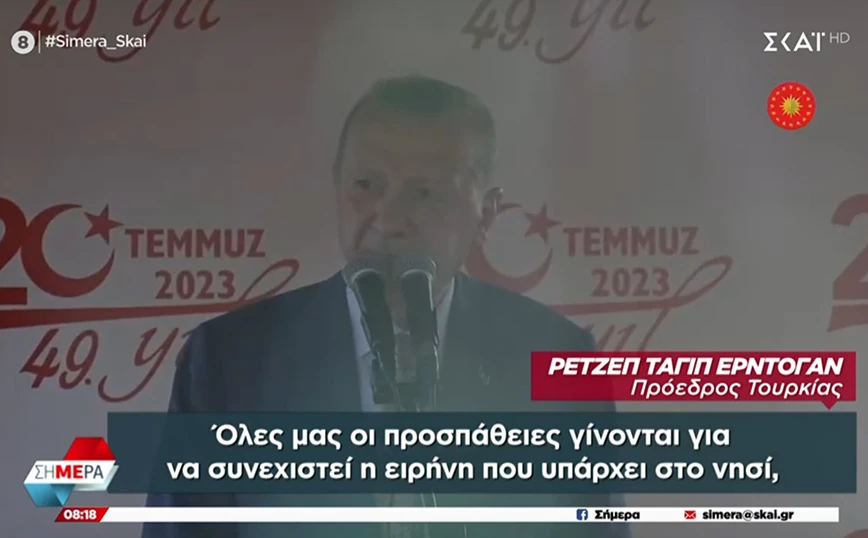 Ιδιαίτερα προκλητικός ήταν σε νέες του δηλώσεις από τα Κατεχόμενα ο πρόεδρος της Τουρκίας Ρετζέπ Ταγίπ Ερντογάν. «Το 1974 φέραμε