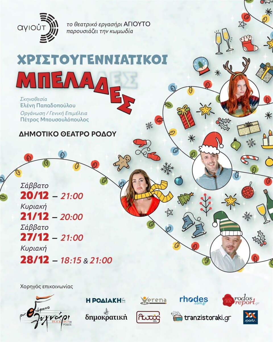 Το Θεατρικό Εργαστήρι ΑΓΙΟΥΤΟ παρουσιάζει στη Ρόδο την κωμωδία «ΧΡΙΣΤΟΥΓΕΝΝΙΑΤΙΚΟΙ ΜΠΕΛΑΔΕΣ», μια χριστουγεννιάτικη παράσταση για όλη την