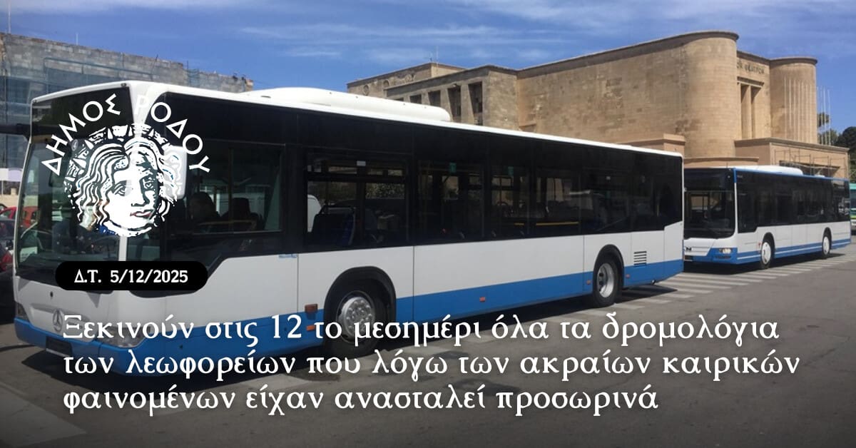Ξεκινούν στις 12 το μεσημέρι όλα τα δρομολόγια των λεωφορείων που λόγω των ακραίων καιρικών φαινομένων είχαν