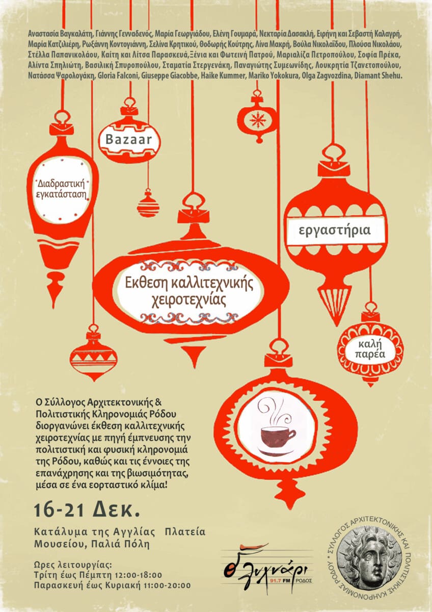 Ο Σύλλογος Αρχιτεκτονικής και Πολιτιστικής Κληρονομιάς Ρόδου σας προσκαλεί στην Έκθεση καλλιτεχνικής χειροτεχνίας που διοργανώνει από τις 16 έως τις