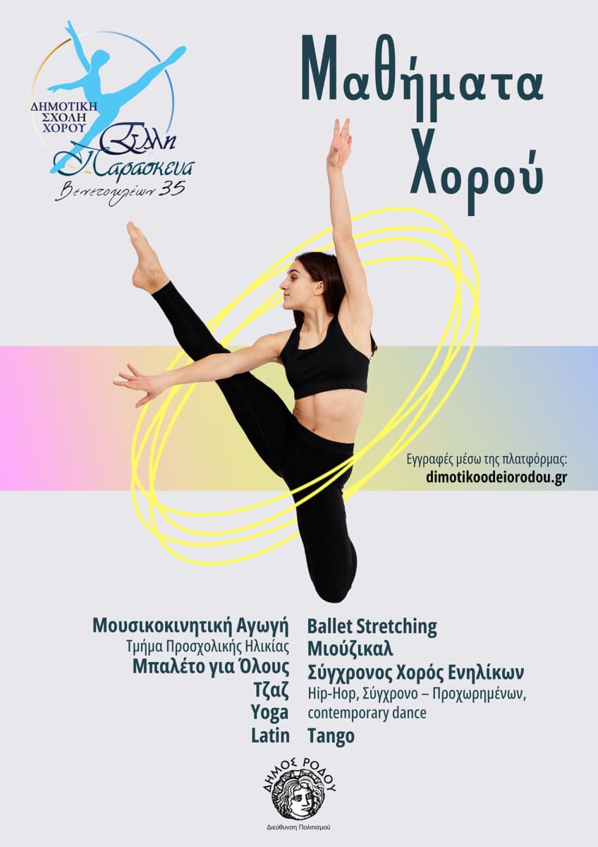 Η Διεύθυνση Πολιτισμού του Δήμου Ρόδου, στο πλαίσιο των εργαστηρίων της, ανακοινώνει την έναρξη μαθημάτων χορού και