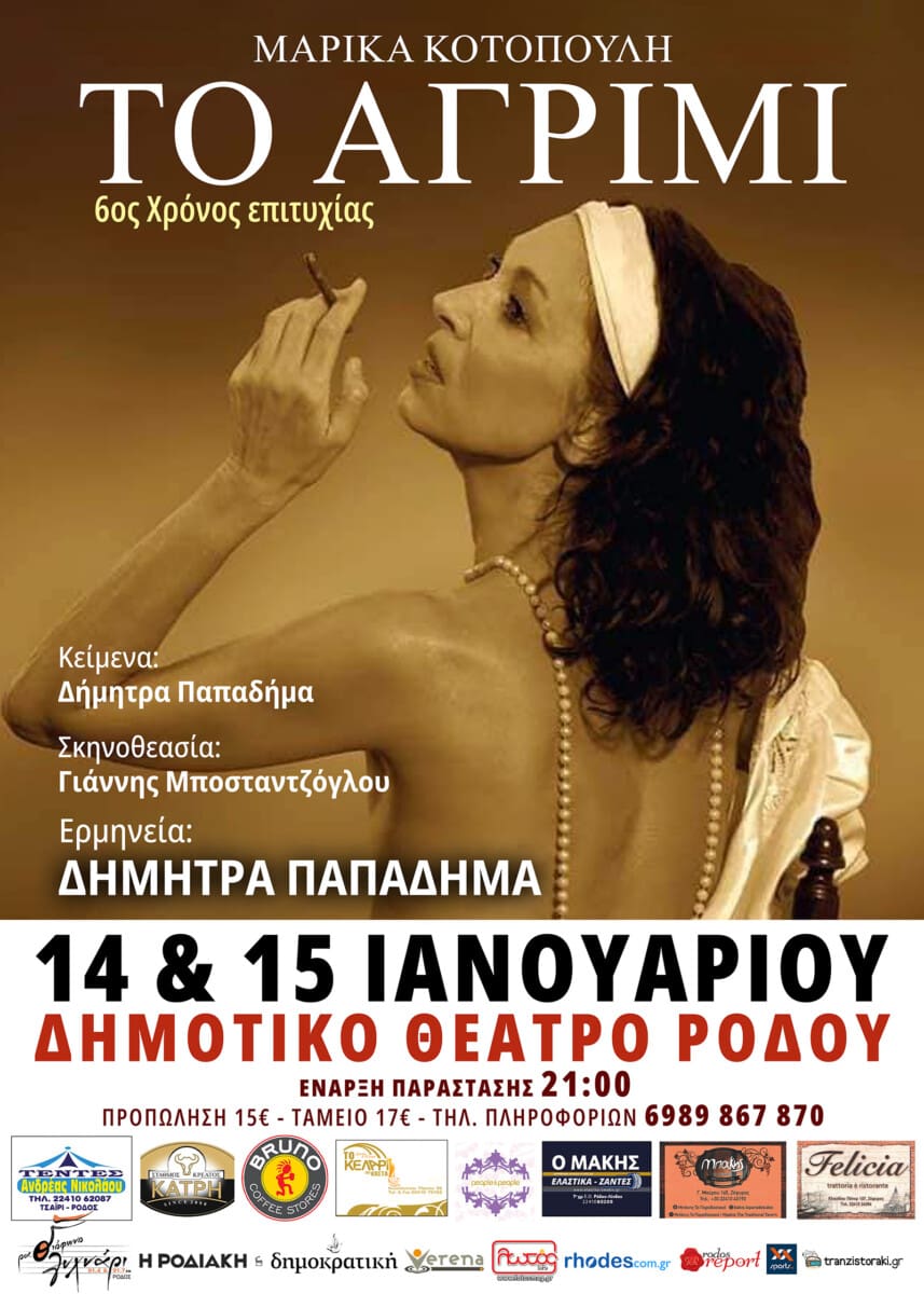 Χορηγός επικοινωνίας Rodosreport Το ΑΓΡΙΜΙ με την μοναδική Δήμητρα Παπαδήμα για δύο μοναδικές παραστάσεις στο ΔΗΜΟΤΙΚΟ ΘΕΑΤΡΟ