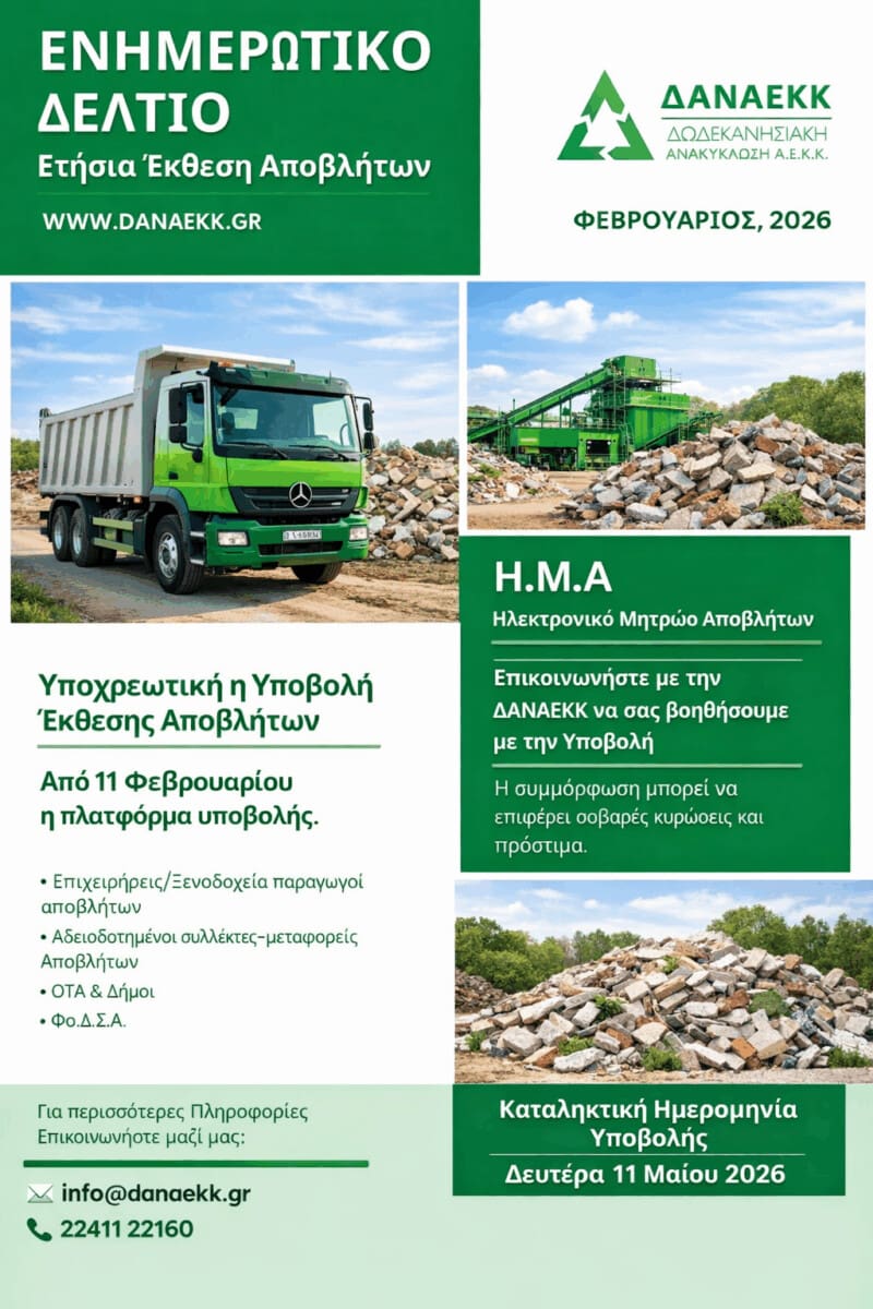 Η ΔΑΝΑΕΚΚ υπενθυμίζει σε όλες τις υπόχρεες επιχειρήσεις, οργανισμούς και φορείς ότι η υποβολή της Ετήσιας Έκθεσης