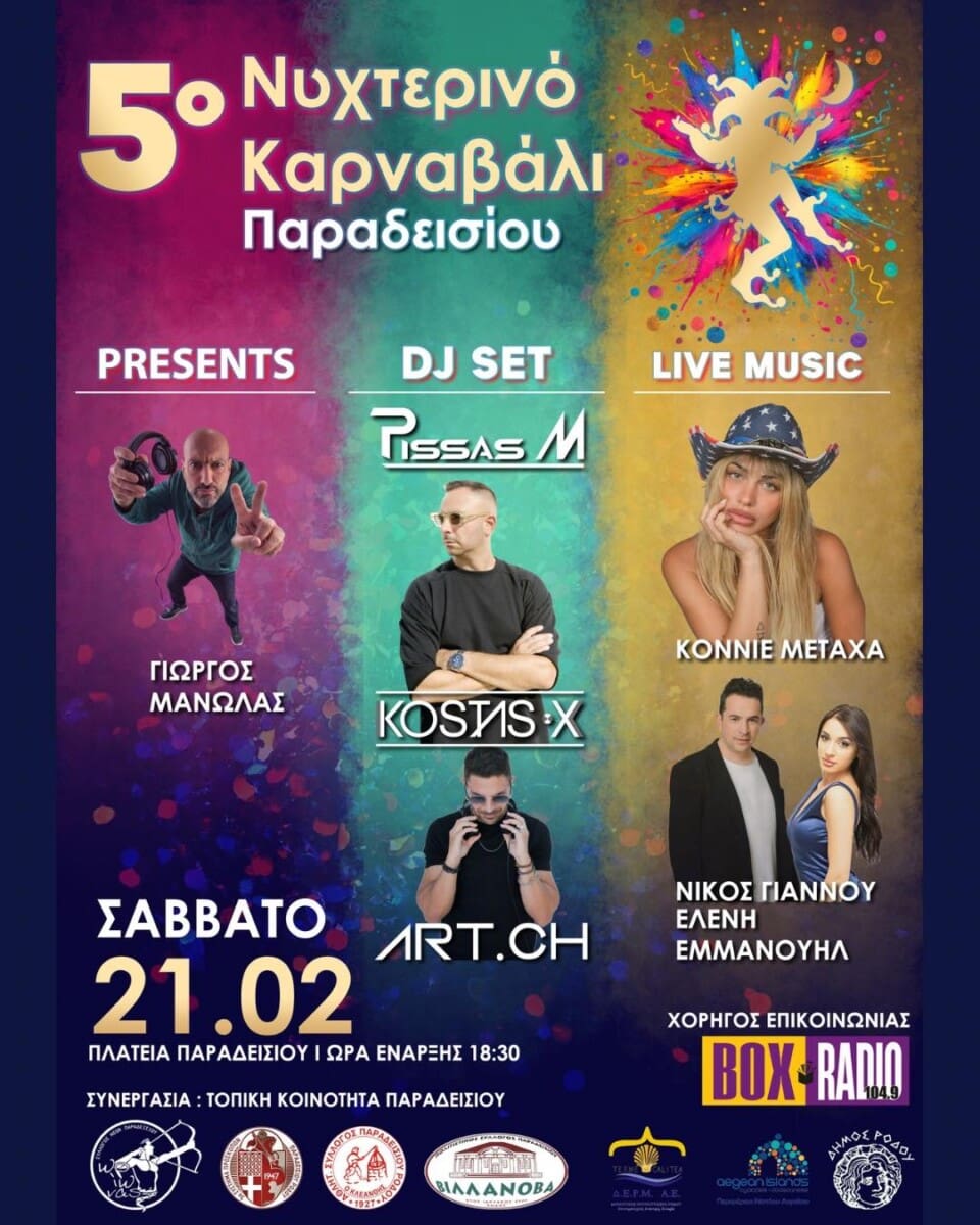 Σας προσκαλούμε στο 5ο Νυχτερινό Καρναβάλι Παραδεισίου, στις 21Φεβρουαρίου 2026, ημέρα Σάββατο και ώρα 6:00 μ.μ., που