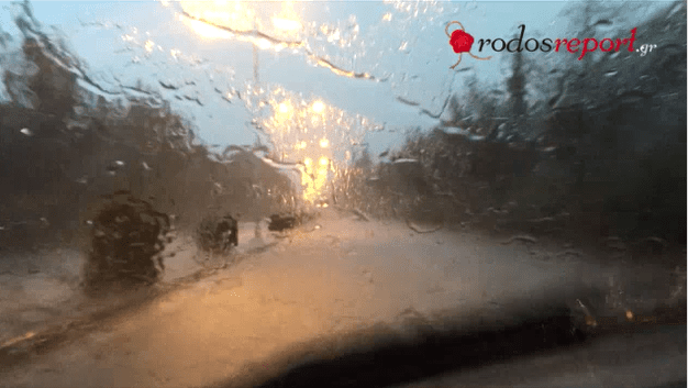 Ισχυρή βροχόπτωση ξεκίνησε λίγο μετά τις 9.00 , στην πόλη της Ρόδου, βρίσκοντας τους οδηγούς και πεζούς