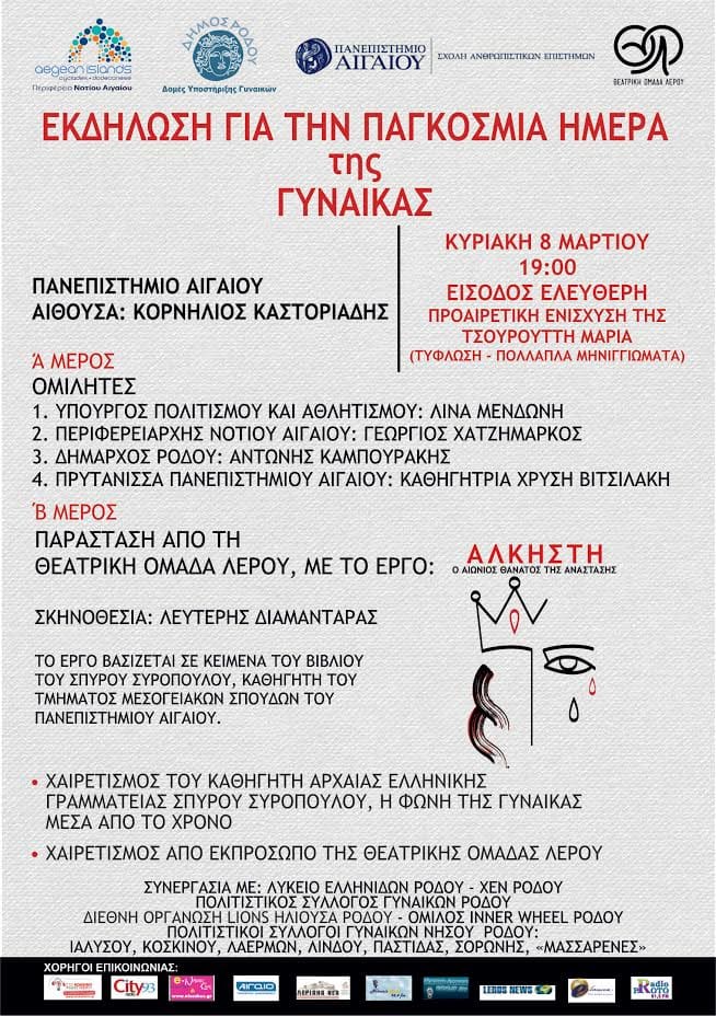 Μία «γεμάτη» μεγάλη εκδήλωση ετοιμάζει η Περιφέρεια Νοτίου Αιγαίου του τομέα Πολιτισμού για την παγκόσμια ημέρα της