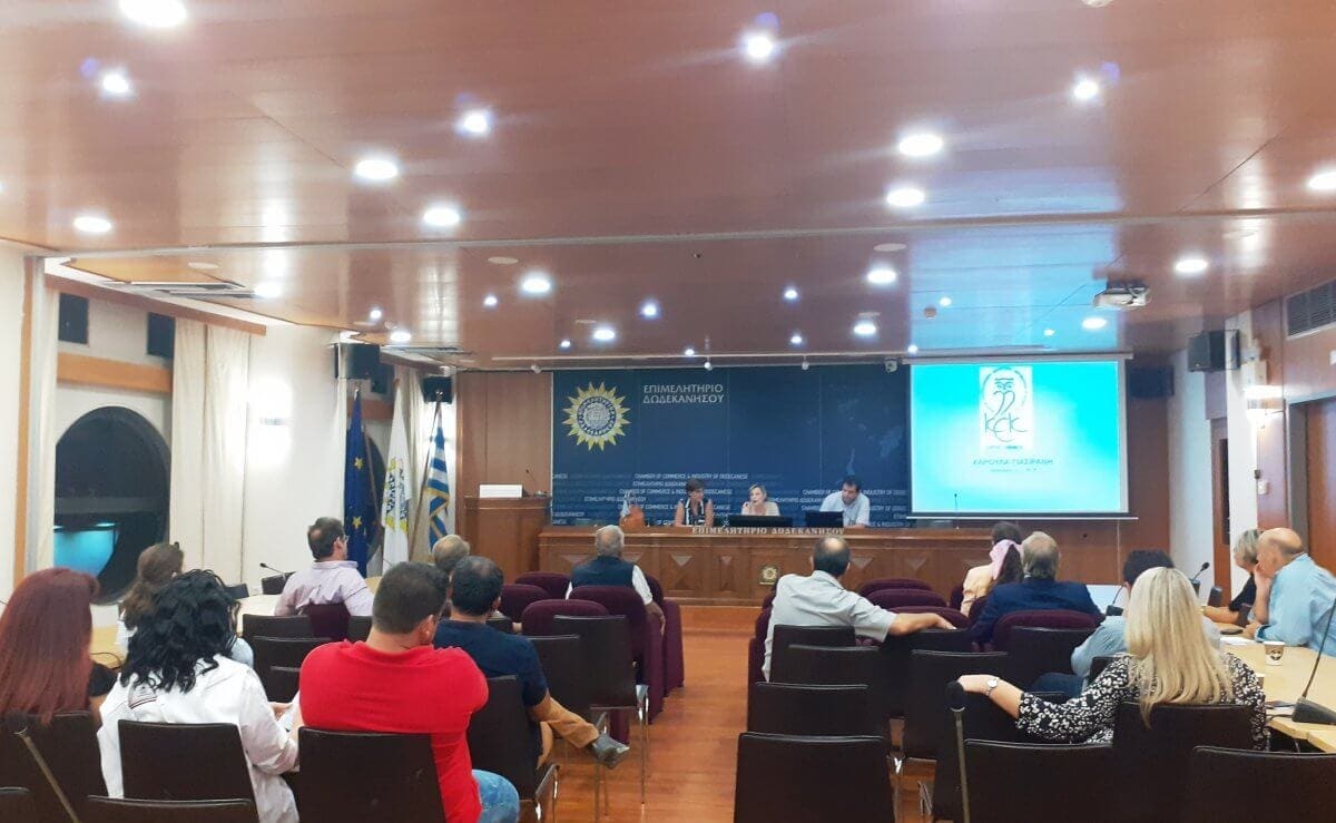 Το Σάββατο, 28/9/2019, στο Επιμελητήριο Δωδεκανήσου, πραγματοποιήθηκε συνάντηση εργασίας με πρωτοβουλία της Προέδρου του ΚΕΚ και Εντεταλμένης