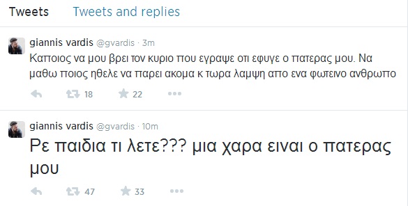 Λίγο αργότερα ο γιος του, Γιάννης Βαρδής, διέψευσε μέσω του λογαριασμού του στο twitter ότι ο πατέρας του έφυγε από τη ζωή.