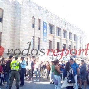 Οι μαθητές και οι μαθήτριες του Μουσικού Σχολείου Ρόδου διαμαρτυρήθηκαν μελωδικά , με πανό και με συνθήματα στο κέντρο της Πόλης και με συμβολική κατάληψη του Δημαρχιακού Μεγάρου Ρόδου σήμερα το πρωί.