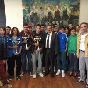Λίγο αργότερα, την αντιπροσωπεία της Ένωσης Ποδοσφαιρικών Σωματείων Δωδεκανήσου, στην οποία έχει θητεύσει κατά το παρελθόν, με επικεφαλής τον Πρόεδρο της Παναγιώτη Διακοφώτη και τα παιδιά, αλλά και τον προπονητή των Μικτών ομάδων (Παίδων και Νέων), που έχουν διακριθεί σε διάφορες φάσεις του Πανελλήνιου Πρωταθλήματος Προεπιλογής Εθνικών Ομάδων, στους οποίους απένειμε επαίνους.