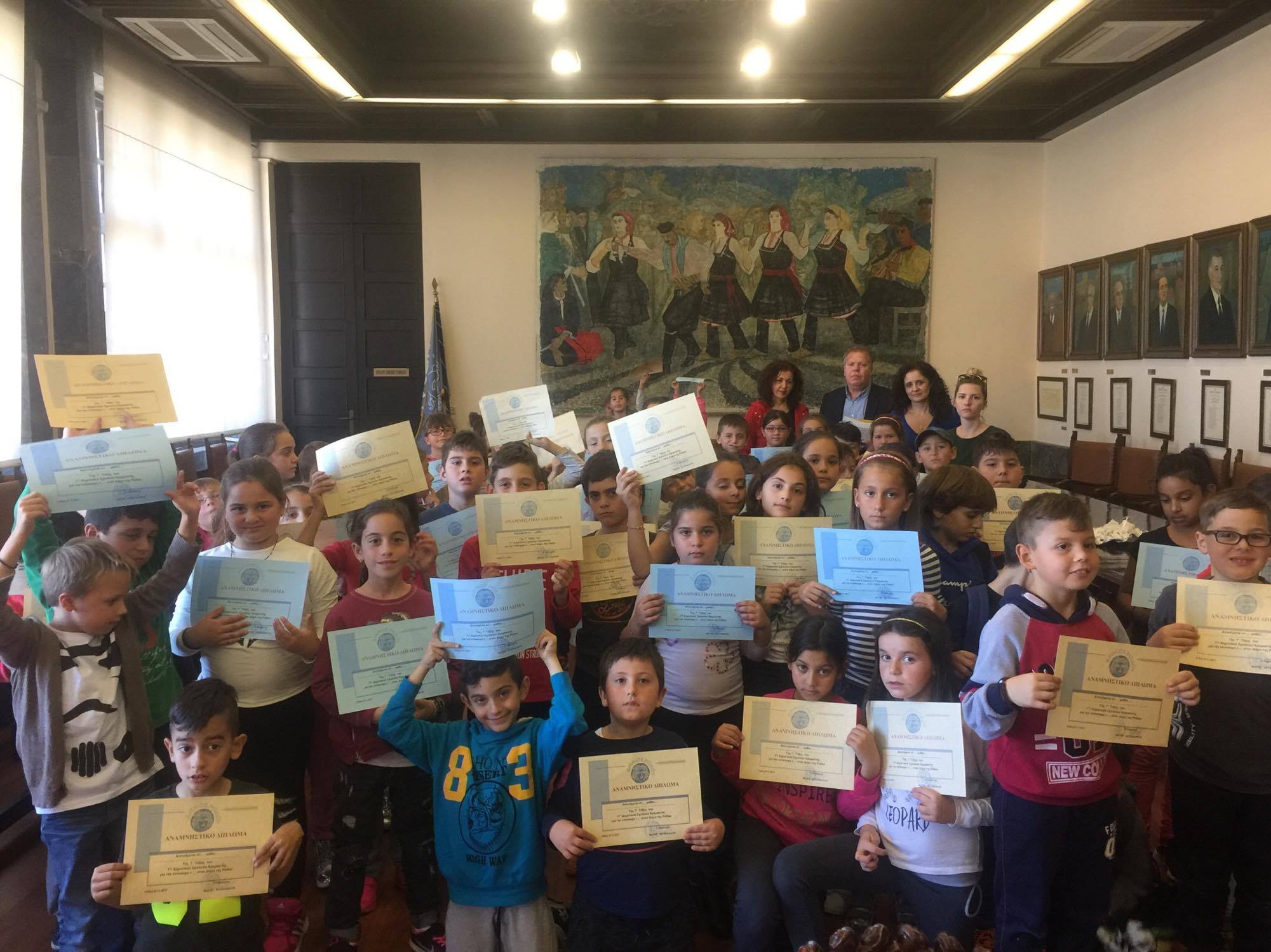 Ακολούθως, στην αίθουσα Εθιμοτυπίας , προσφέρθηκε κέρασμα στα παιδιά και ο Αντιδήμαρχος ευχήθηκε «καλή πρόοδο», τονίζοντας την σημαντικότητα της μάθησης με την βοήθεια των εκπαιδευτικών μέσα στη σχολική τάξη και έξω από αυτή, ώστε να δημιουργηθεί η συμπεριφορά των ενεργών πολιτών.