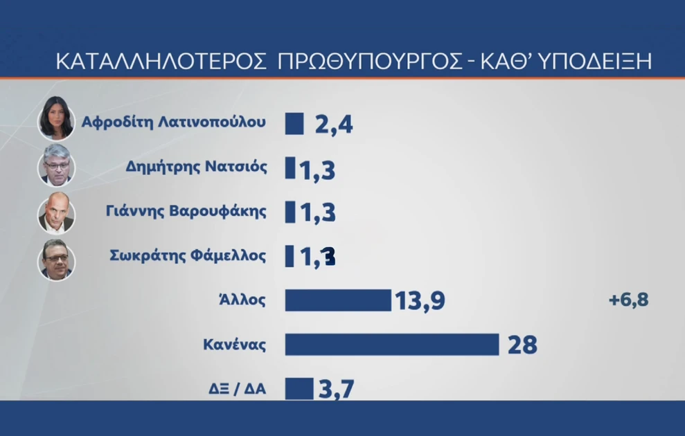Στο ερώτημα ποιος είναι ο πιο κατάλληλος για πρωθυπουργός, οι πολίτες απάντησαν: