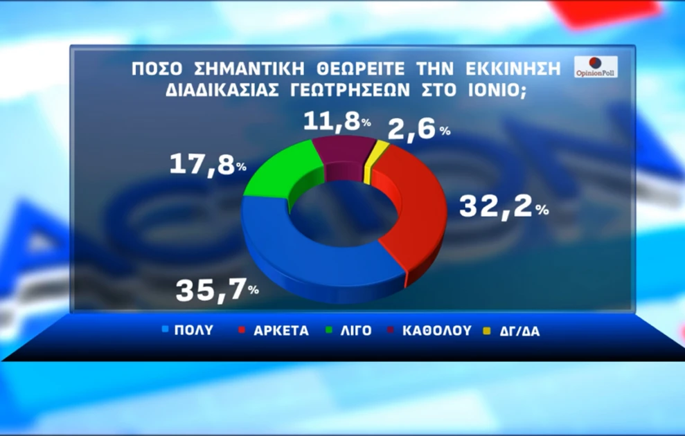 Επιπλέον, το 67,9% θεωρεί πολύ και αρκετά σημαντικό ότι για πρώτη φορά ξεκινούν ερευνητικές γεωτρήσεις για την αξιοποίηση πιθανών κοιτασμάτων υποθαλάσσιου φυσικού αερίου βορειοδυτικά της Κέρκυρας, σε συνεργασία με την Exxon Mobil.
