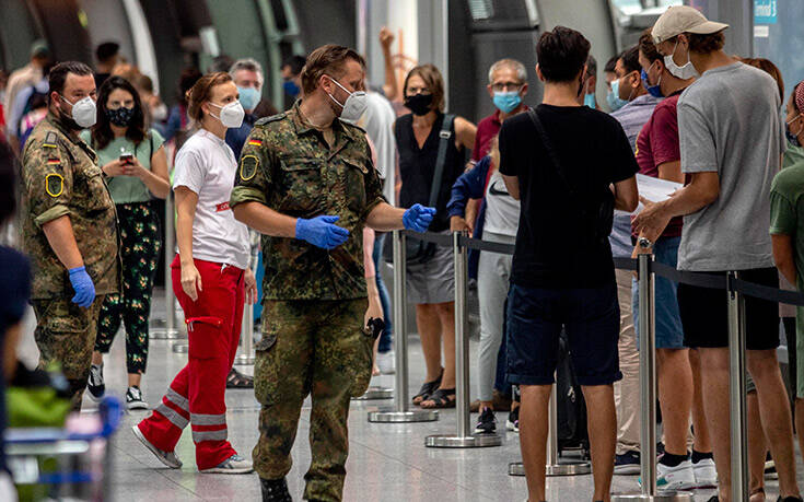 Σε όσους φτάνουν στο αεροδρόμιο της Φρανκφούρτης, το πρώτο πράγμα που τους κάνει εντύπωση είναι τα κλειστά εμπορικά και καταστήματα εστίασης και ο εντυπωσιακά μικρός αριθμός επιβατών που διακινούνται στο δεύτερο μεγαλύτερο αεροδρόμιο της Ευρώπης, στην καρδιά του καλοκαιριού. Το δεύτερο είναι οι μεγάλες ουρές στα δύο κέντρα για τεστ κορονοϊού που έχουν στηθεί στο διάδρομο από τον Τερματικό Σταθμό 1 προς τις αποβάθρες των τρένων. Συνεργάτες του ενός εξ αυτού – της Centogene, μιας γρήγορα αναπτυσσόμενης εταιρείας με έδρα το Ρόστοκ που ειδικεύεται στη διαγνωστική – με κόκκινα μπλουζάκια, δίνουν πληροφορίες και βοηθούν εκατοντάδες ταξιδιώτες αλλά και απλούς πολίτες να συμπληρώσουν ή να ελέγξουν αιτήσεις για να κάνουν το τεστ.
