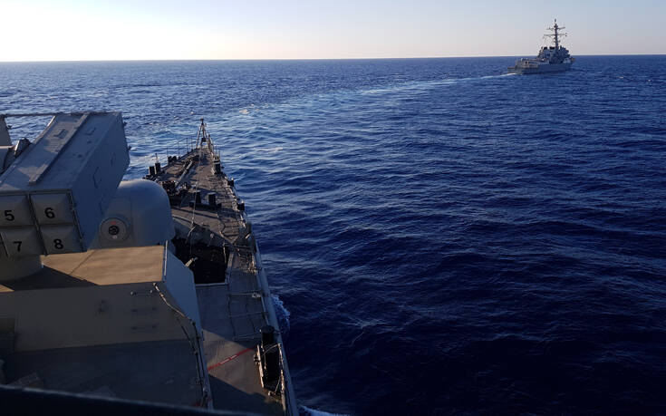 Εικόνες από την αεροναυτική άσκηση Ελλάδας-ΗΠΑ νότια της Κρήτης με αντιτορπιλικό, υποβρύχιο και F- 16