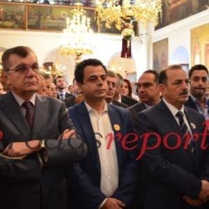 Μεταξύ άλλων παρέστησαν ο Αρχηγός της Αξιωματικής Αντιπολίτευσης και Πρόεδρος της Νέας Δημοκρατίας κ. Ευάγγελος Μεϊμαράκης, οι βουλευτές του Νομού Δημήτρης Γάκης, Νεκτάριος Σαντορινιός, Μάνος Κόνσολας και Δημήτρης Κρεμαστινός, ο Δήμαρχος Ρόδου Φώτης Χατζηδιάκος, οι Αντιπεριφερειάρχες Φιλήμονας Ζαννετίδης , Γιάννης Φλεβάρης, Χαράλαμπος Κόκκινος, οι επικεφαλής των παρατάξεων του Δήμου Ρόδου Στράτος Καρίκης, Γιώργος Υψηλάντης, Χατζής Χατζηευθυμίου, οι τ. βουλευτές Γιάννης Παπάς, Μίκα Ιατρίδη, Βασίλης Χρύσης, ο Στρατηγός, η πολιτευτής των ΑΝΕΛ Μαρία Αγγέλου, στελέχη της τοπικής αυτοδιοίκησης πρώτου και δευτέρου βαθμού, εκπρόσωποι του στρατού και των σωμάτων ασφαλείας του νησιού. Επίσης παρέστησαν οι άρχοντες Οφφυκίαλοι του Οικουμενικού Πατριαρχείου Γιάννης Μαχαιρίδης (τ. Περιφερειάρχης) και Αθανάσιος Στάμος.