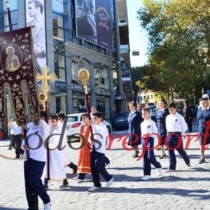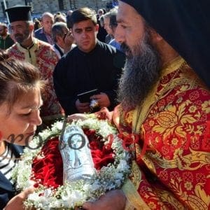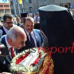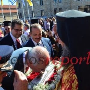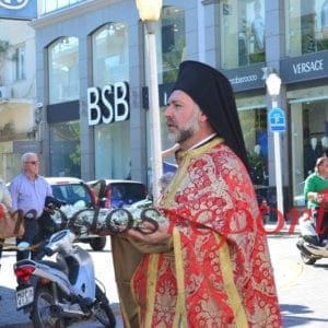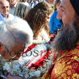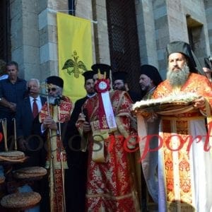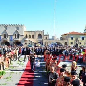 Πλήθος πιστών συγκεντρώθηκε και εχθές βράδυ κατά τον Πανηγυρικό Εσπερινό και σήμερα το πρωί κατά την Πολυαρχιερατική Θεία Λειτουργία και τη λιτανεία της Ιεράς Εικόνος και του Ιερού Λειψάνου. Μαζί με τον Σεβασμιώτατο Αρχιεπίσκοπο Κρήτης κ. Ειρηναίο, συλλειτούργησαν οι Μητροπολίτες Ρόδου κ. Κύριλλος, Λέρου Καλύμνου και Αστυπαλαίας κ. Παίσιος και Κώου και Νισύρου κ. Ναθαναήλ. Εντύπωση προκάλεσαν οι μαθητές των σχολείων της Ρόδου που έδωσαν το βροντερό “παρών” με τη συνοδεία της Φιλαρμονικής του Δήμου Ρόδου και του Στρατού.