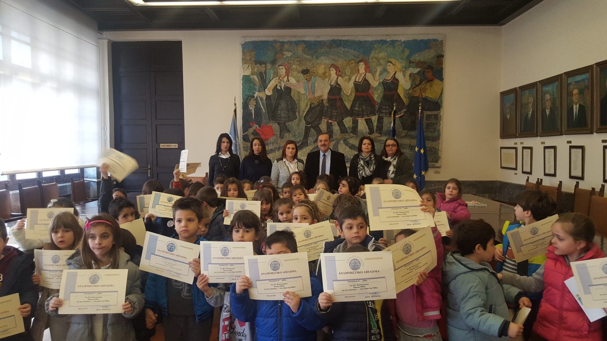 Οι μαθητές πρόσφεραν στο Δήμαρχο, κατασκευές από ανακυκλώσιμα υλικά, τα οποία έχουν περισυλλέξει από διάφορες δράσεις καθαρισμού, μεταξύ άλλων και της παραλίας του Ενυδρείου, διατυπώνοντας την πρόσθεση τους να συνεργαστούν με τις υπηρεσίες και τους αρμόδιους φορείς του Δήμου και να συνεισφέρουν με οποιοδήποτε τρόπο τους ζητηθεί.