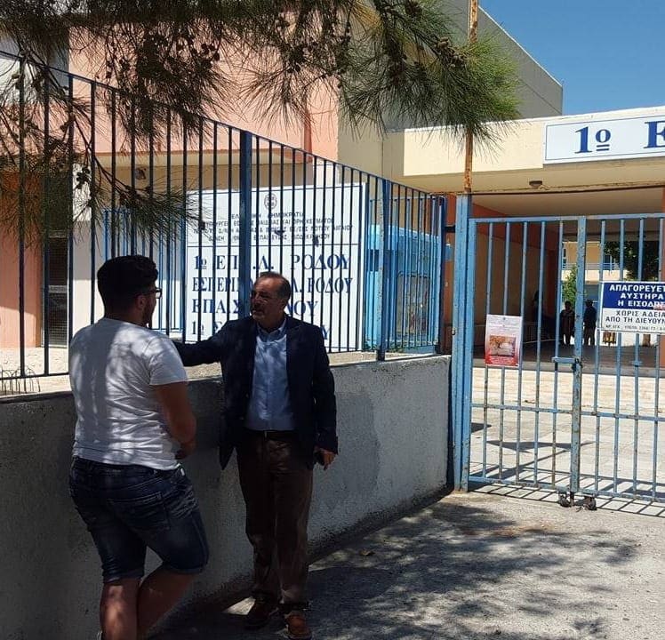 Με αφορμή την έναρξη των πανελλαδικών εξετάσεων, ο Δήμαρχος Ρόδου κ. Φώτης Χατζηδιάκος, συνοδευόμενος από τον Αντιδήμαρχο Παιδείας, Πολιτισμού και Αθλητισμού κ. Γιάννη Κορωναίο, πραγματοποίησαν επίσκεψη στο 1ο ΕΠΑΛ Ρόδου, συνομίλησαν με τους μαθητές και τους ευχήθηκαν καλή επιτυχία.